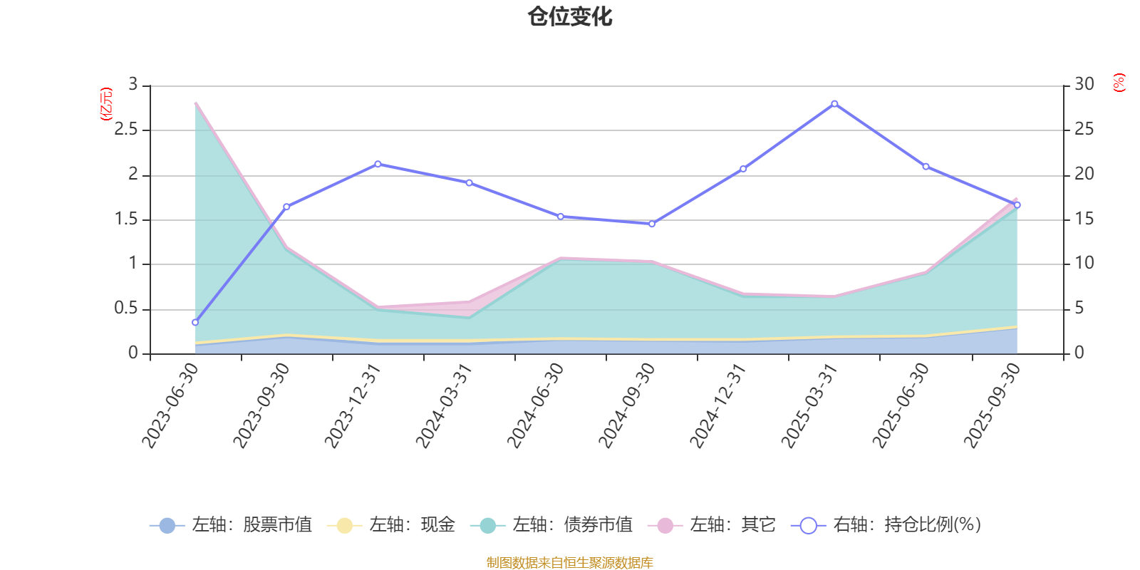据定期报告数据统计,成立以来平均股票仓位为17.64%,同类平均为19.14%。2025年一季度末基金达到27.96%的最高仓位,2023年上半年末最低,为3.51%。