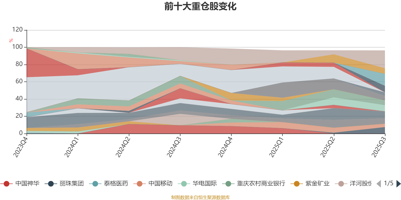 该基金持股集中度较高,近2年前十大重仓股集中度长期超过60%。截至2025年三季度末,基金重仓股分别是新奥能源、丽珠医药、瀚蓝环境、丽珠集团、招商银行、北控水务集团、菜百股份、科伦药业、粤海投资、健帆生物、中国移动。