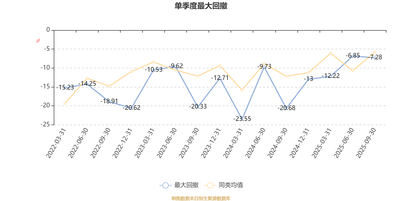 截至10月24日,基金近三年最大回撤为48.51%,同类可比基金排名323/365。单季度最大回撤出现在2024年一季度,为23.55%。