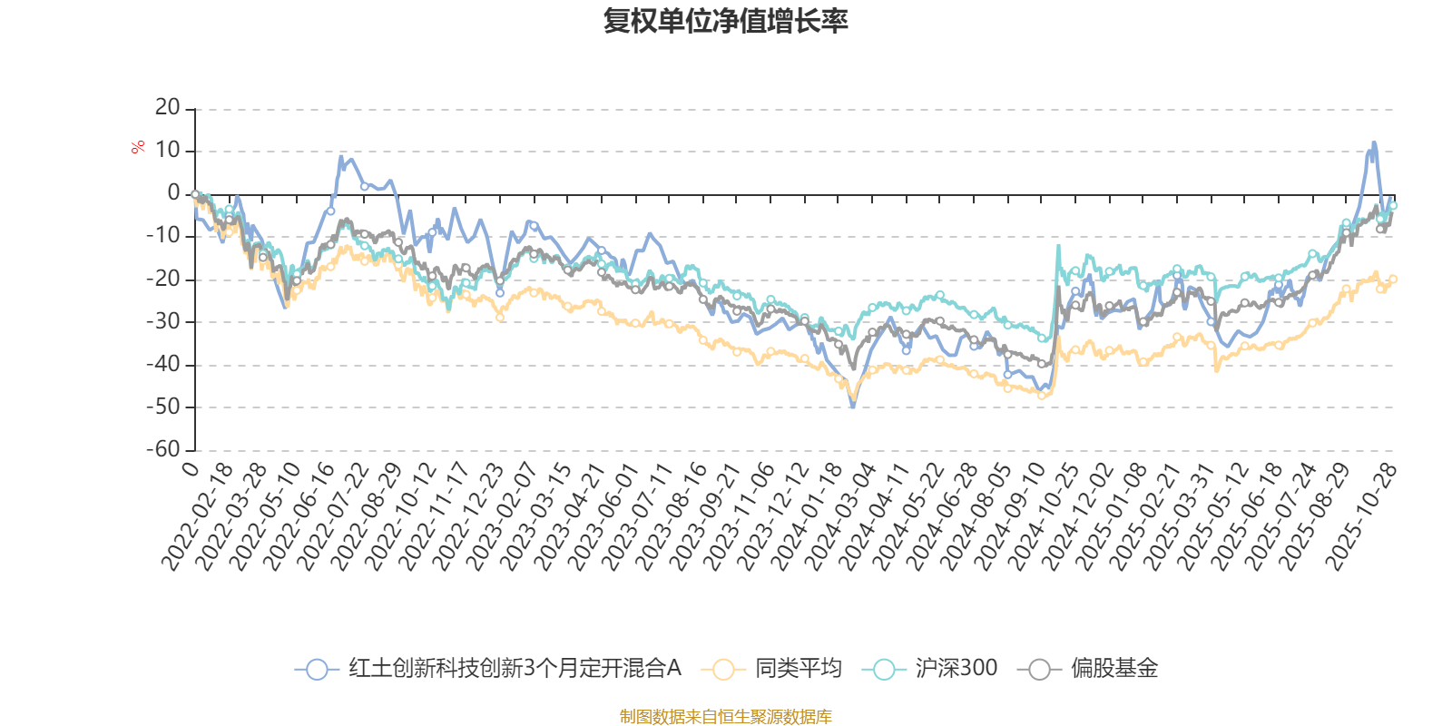 截至10月24日,红土创新科技创新3个月定开混合A近三个月复权单位净值增长率为23.69%,位于同类可比基金146/689;近半年复权单位净值增长率为54.75%,位于同类可比基金59/688;近一年复权单位净值增长率为33.71%,位于同类可比基金218/653;近三年复权单位净值增长率为7.98%,位于同类可比基金215/364。