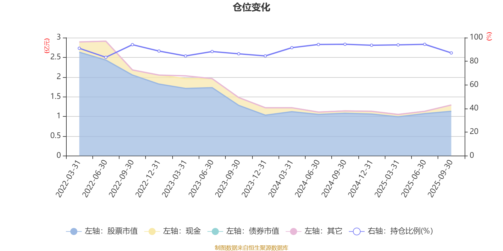 据定期报告数据统计,近三年平均股票仓位为90.11%,同类平均为83.73%。2024年三季度末基金达到94.41%的最高仓位,2022年上半年末最低,为83.39%。