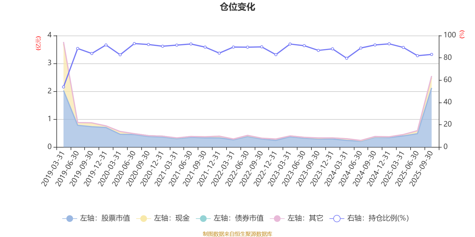 据定期报告数据统计,近三年平均股票仓位为87.33%,同类平均为72.35%。2020年上半年末基金达到92.8%的最高仓位,2019年一季度末最低,为53.92%。