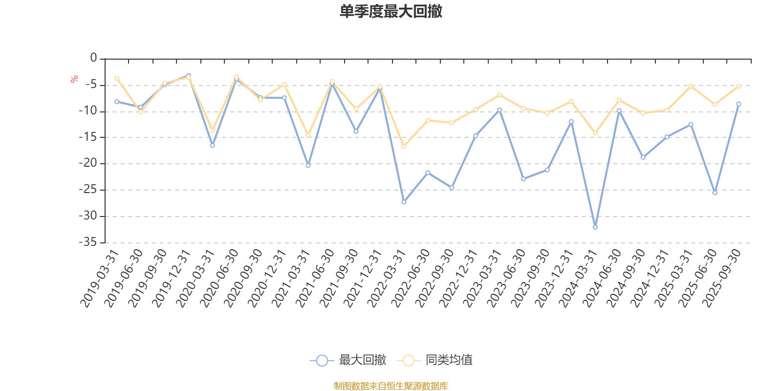 截至10月27日,基金近三年最大回撤为53.22%,同类可比基金排名1226/1274。单季度最大回撤出现在2024年一季度,为32.04%。