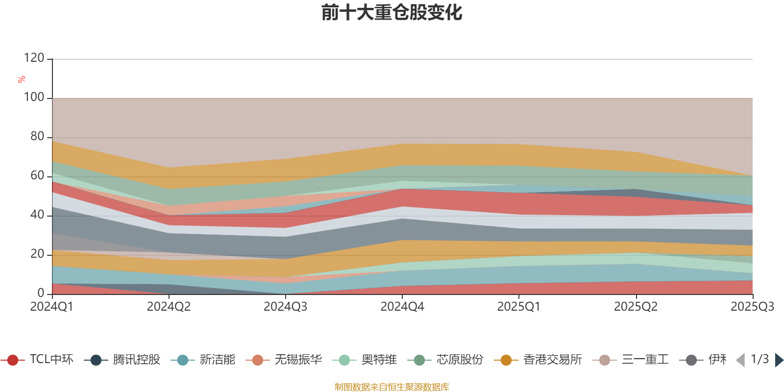该基金持股集中度较高,且持股标的较为稳定。截至2025年三季度末,基金十大重仓股分别是长城汽车、晶盛机电、伯特利、TCL中环、香港交易所、奥特维、艾为电子、爱尔眼科、新洁能、芯原股份。