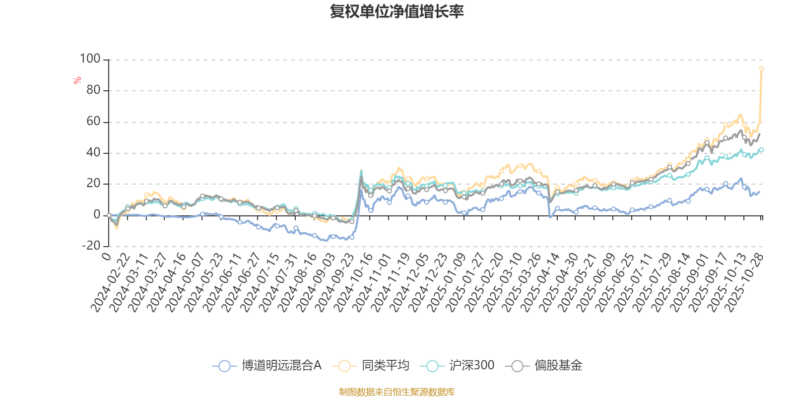 截至10月27日,博道明远混合A近三个月复权单位净值增长率为5.86%,位于同类可比基金91/100;近半年复权单位净值增长率为11.89%,位于同类可比基金95/99;近一年复权单位净值增长率为2.91%,位于同类可比基金81/90。