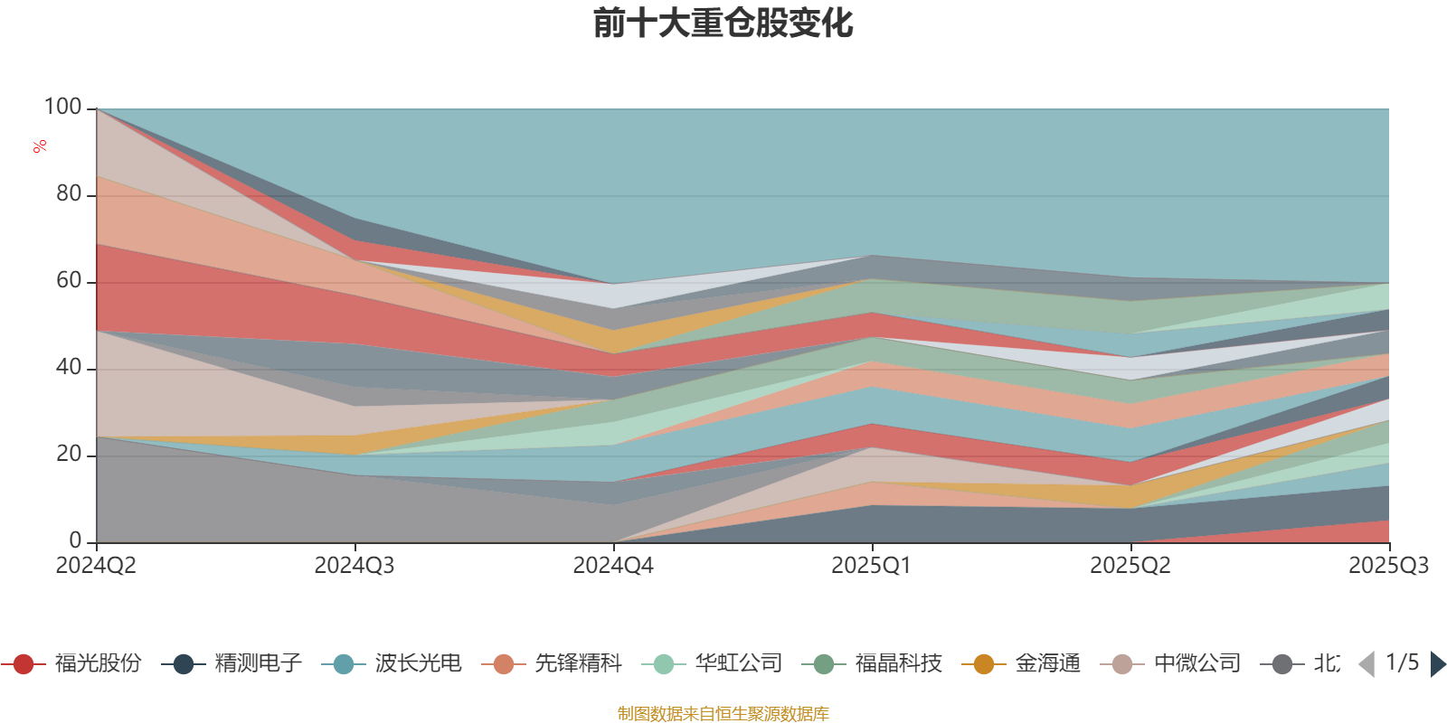 该基金持股集中度较高。截至2025年三季度末,基金重仓股分别是精测电子、华虹半导体、奥普光电、波长光电、汇成真空、概伦电子、福晶科技、福光股份、茂莱光学、中润光学、华虹公司。