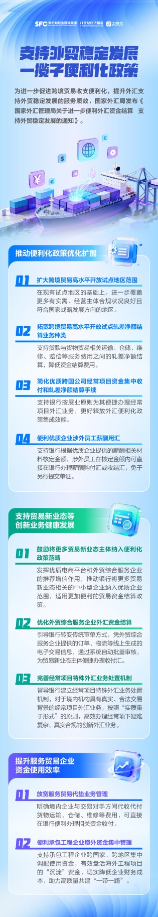 支持贸易新业态等创新业务健康发展方面,国家外汇局推出了三项政策: