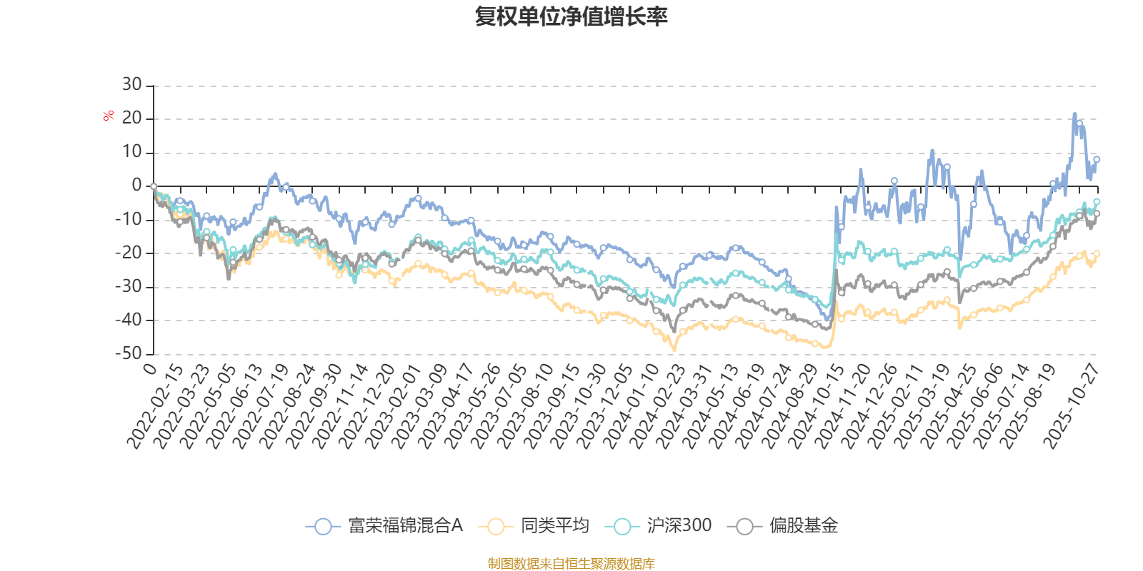 截至10月27日,富荣福锦混合A近三个月复权单位净值增长率为18.81%,位于同类可比基金238/689;近半年复权单位净值增长率为14.04%,位于同类可比基金575/688;近一年复权单位净值增长率为12.45%,位于同类可比基金545/653;近三年复权单位净值增长率为27.20%,位于同类可比基金98/364。
