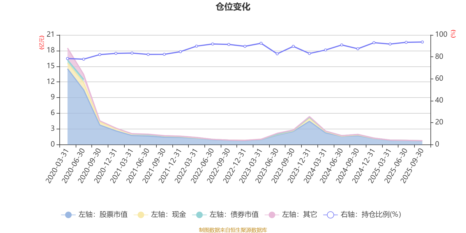 据定期报告数据统计,近三年平均股票仓位为89.47%,同类平均为88.23%。2025年三季度末基金达到93.55%的最高仓位,2020年上半年末最低,为77.92%。