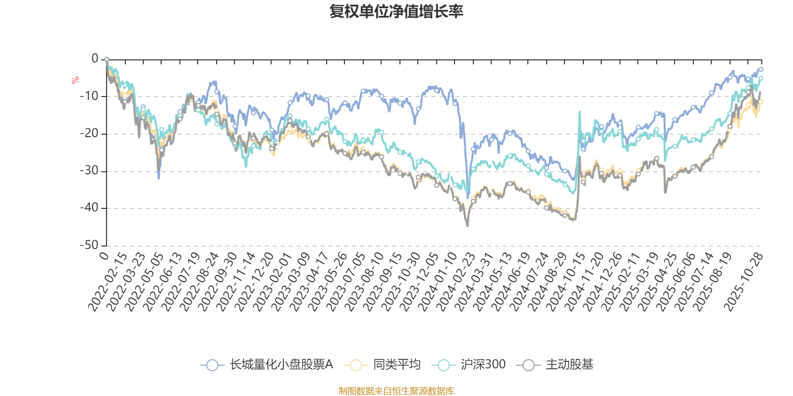 截至10月28日,长城量化小盘股票A近三个月复权单位净值增长率为4.54%,位于同类可比基金93/121;近半年复权单位净值增长率为17.02%,位于同类可比基金90/121;近一年复权单位净值增长率为21.80%,位于同类可比基金66/115;近三年复权单位净值增长率为18.54%,位于同类可比基金49/87。