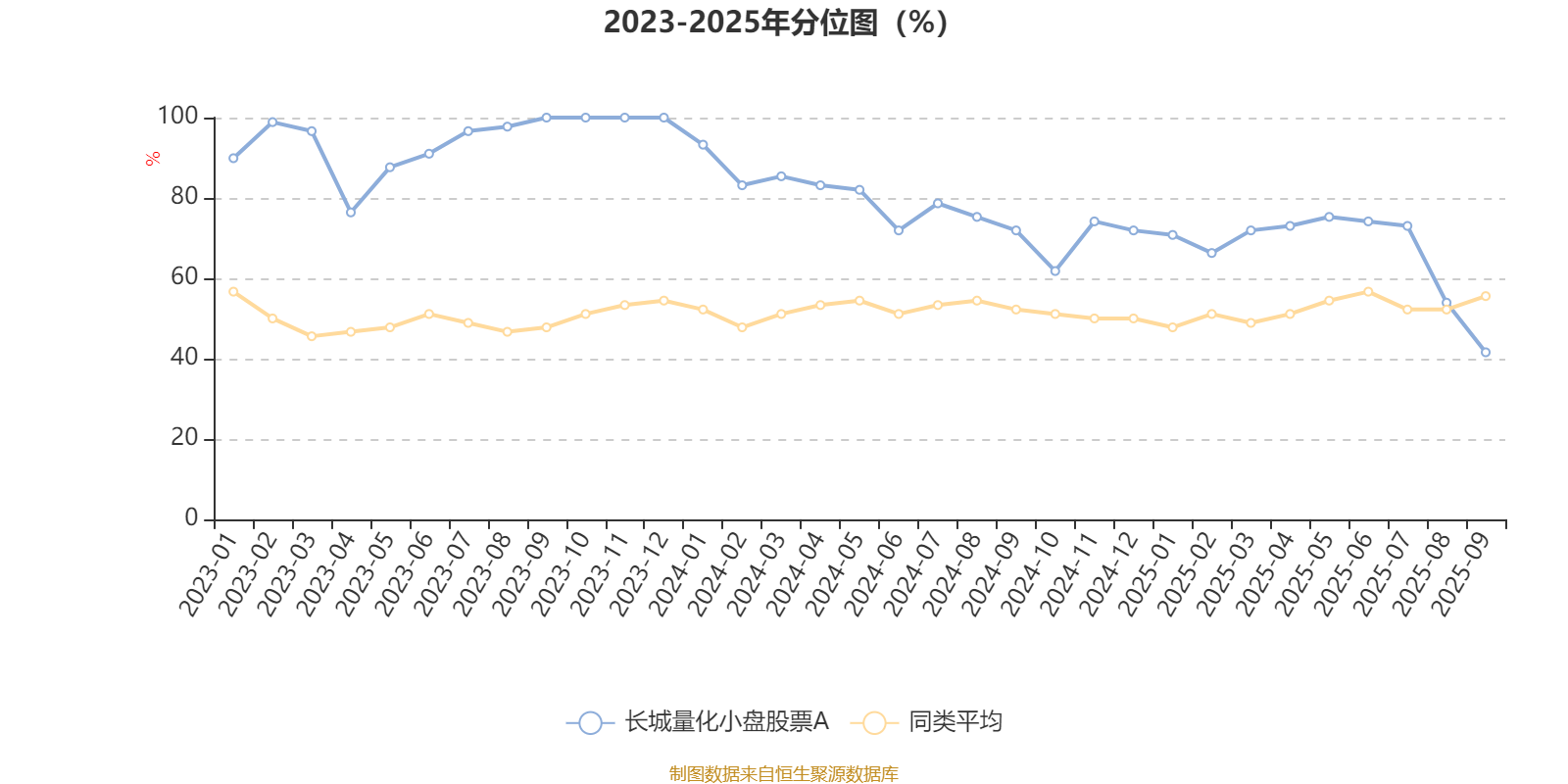 通过所选区间该基金净值增长率分位图,可以观察该基金与同类基金业绩比较情况。图为坐标原点到区间内某时点的净值增长率在同类基金中的分位数。