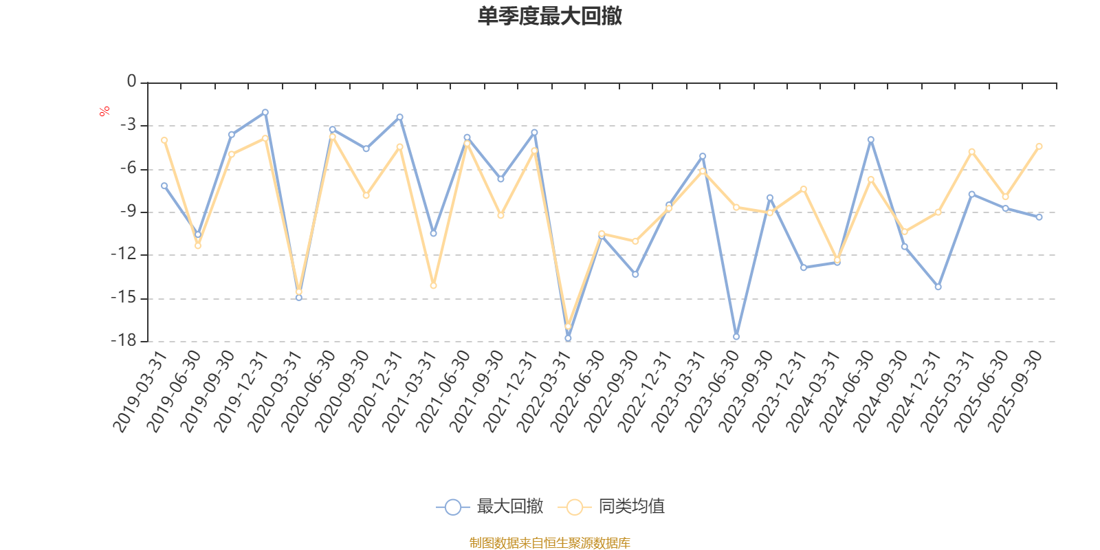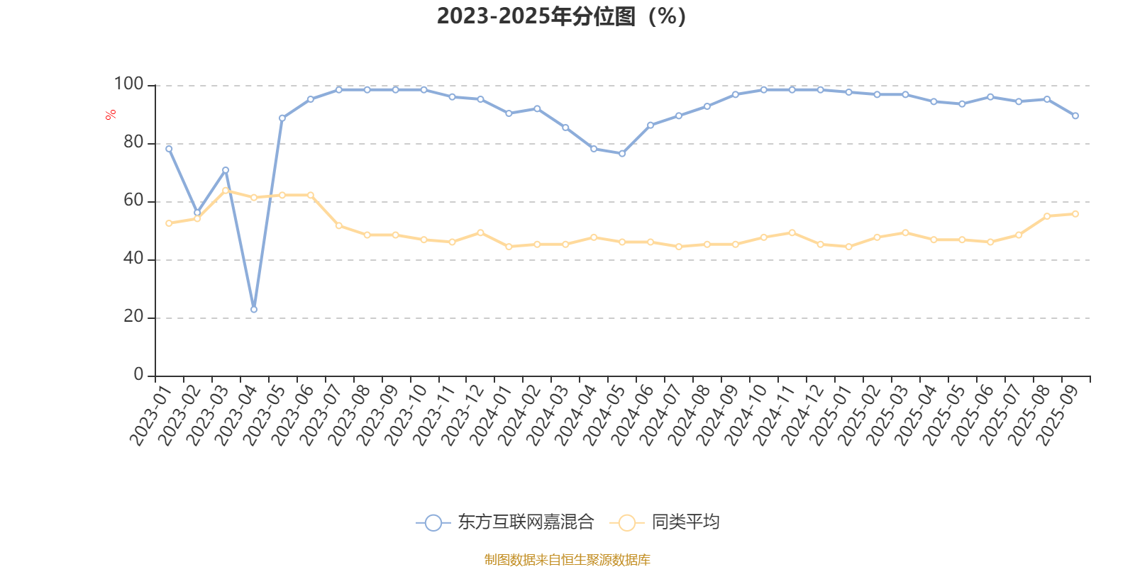 通过所选区间该基金净值增长率分位图,可以观察该基金与同类基金业绩比较情况。图为坐标原点到区间内某时点的净值增长率在同类基金中的分位数。