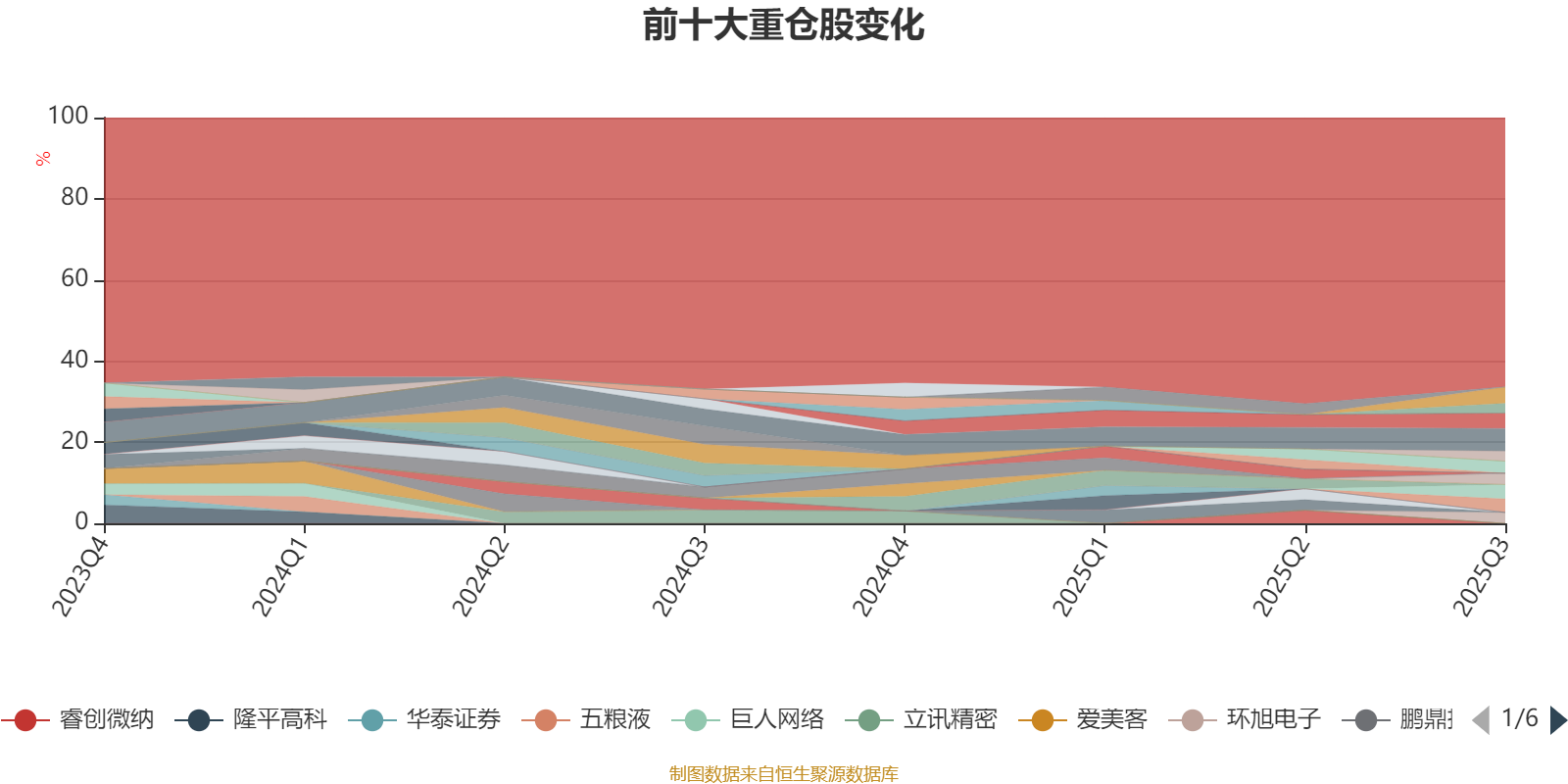 截至2025年三季度末,基金十大重仓股分别是恺英网络、华新水泥、中芯国际、新宙邦、菲利华、东吴证券、万华化学、环旭电子、东田微、三一重工。