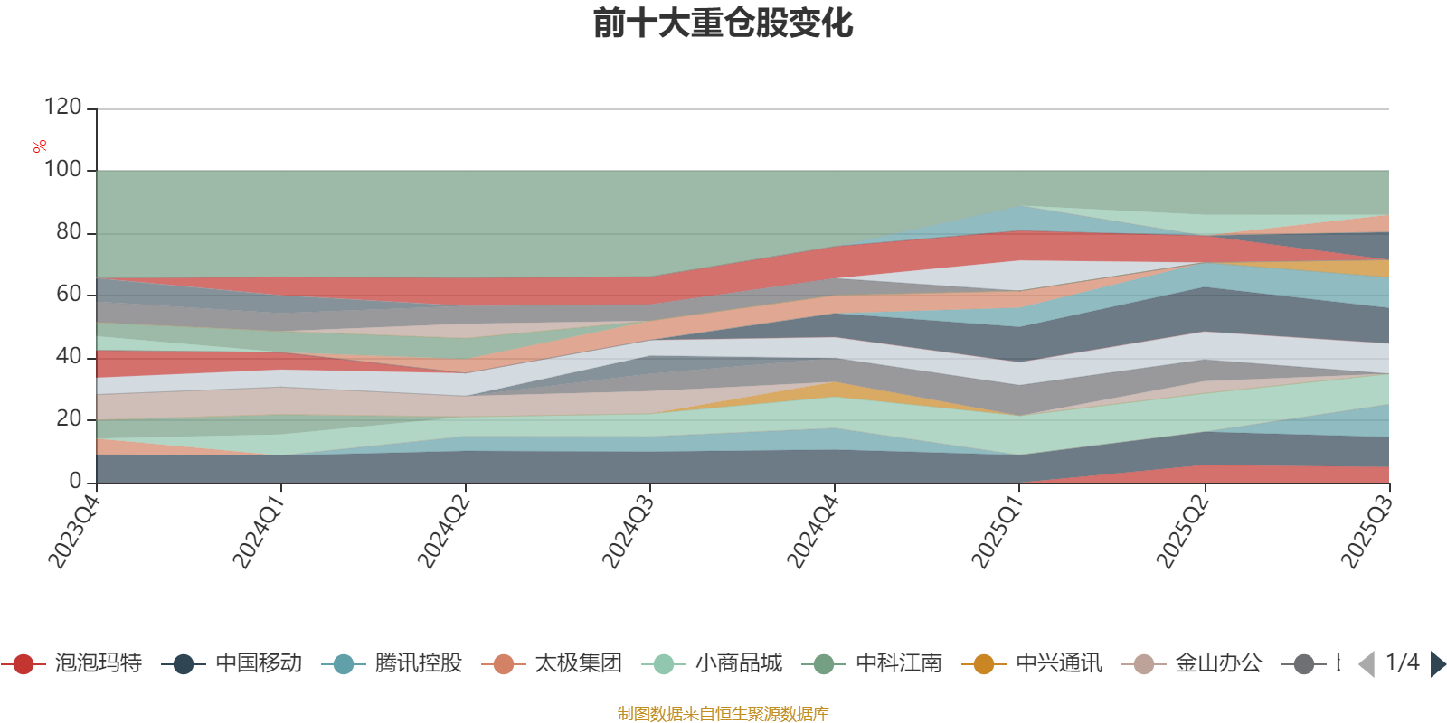 该基金持股集中度较高,近2年前十大重仓股集中度长期超过60%。截至2025年三季度末,基金十大重仓股分别是小米集团-W、腾讯控股、中芯国际、小商品城、海光信息、中国移动、工业富联、沪电股份、东方甄选、泡泡玛特。