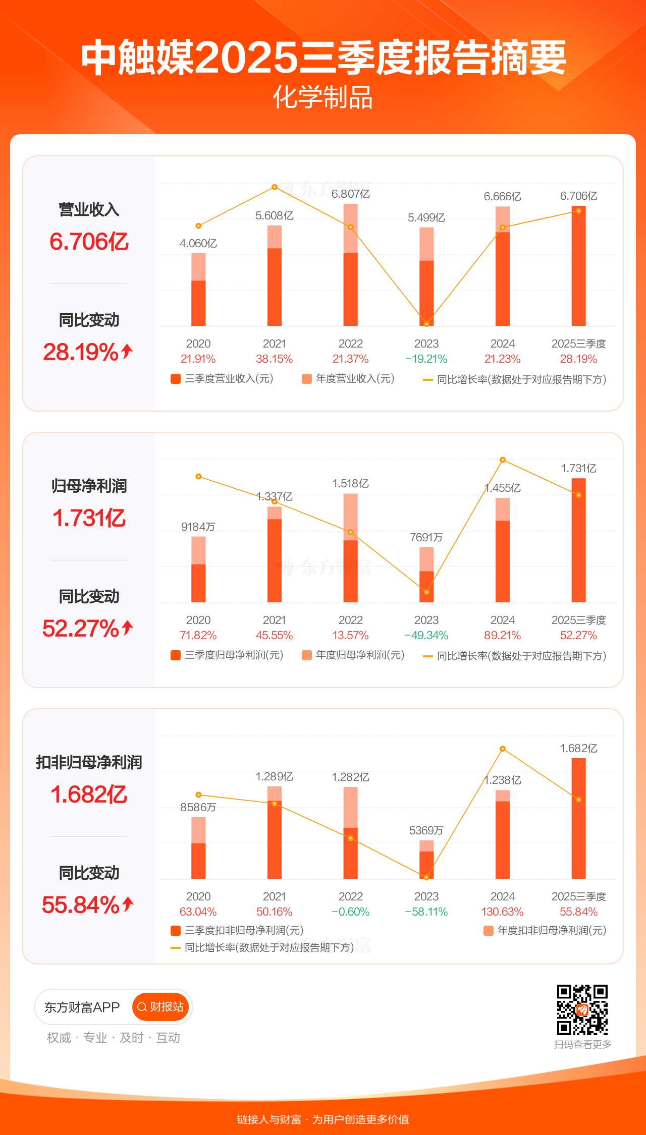 中触媒10月30日发布2025年三季报显示,公司前三季实现营业收入6.71亿元,同比增长28.19%;归母净利润1.73亿元,同比增长52.27%;扣非归母净利润1.68亿元,同比增长55.84%。