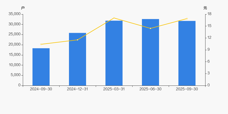 2024年9月30日至今,公司股东户数显著大幅增长,区间涨幅达73.35%。2024年9月30日至2025年9月30日区间股价上涨62.36%。