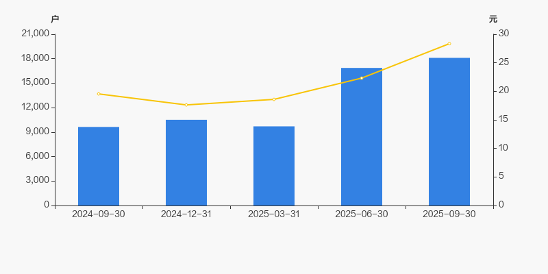 2024年9月30日至今,公司股东户数显著大幅增长,区间涨幅达87.93%。2024年9月30日至2025年9月30日区间股价上涨45.04%。