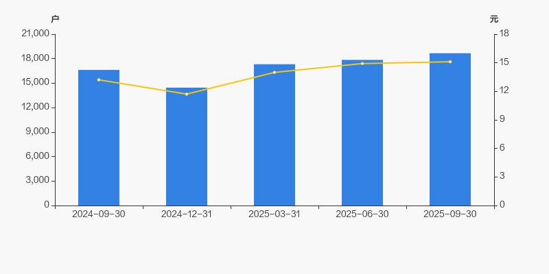 截至2025年9月30日,公司最新总股本为1.65亿股,其中流通股本为1.19亿股。户均持有流通股数量由上期的6660股下降至6369股,户均流通市值9.62万元。