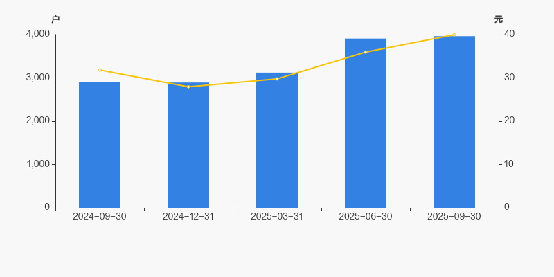 自2024年12月31日以来,公司股东户数连续3期上涨,截至目前增幅为37.02%。2024年12月31日至2025年9月30日区间股价上涨43.14%。