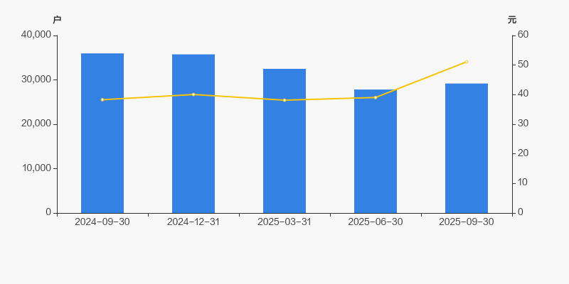 2024年9月30日至今,公司股东户数显著下降,区间跌幅为18.88%。2024年9月30日至2025年9月30日区间股价上涨33.46%。