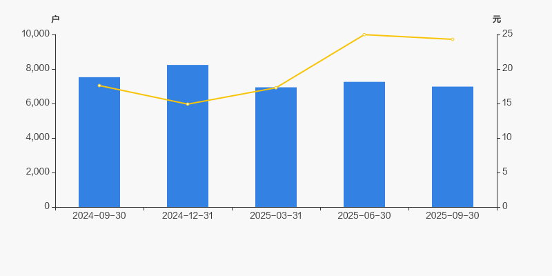 2024年9月30日至今,公司股东户数有所下降,区间跌幅为7.26%。2024年9月30日至2025年9月30日区间股价上涨38.07%。