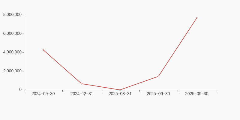 截至2025年9月30日,公司最新总股本为8.53亿股,其中流通股本为8.44亿股。户均持有流通股数量由上期的7501股上升至8710股,户均流通市值8.5万元。