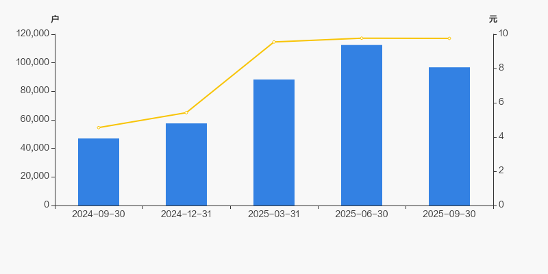 2024年9月30日至今,公司股东户数成倍增长,区间涨幅达106.24%。2024年9月30日至2025年9月30日区间股价上涨114.51%。