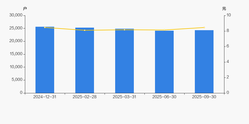 2024年12月31日至今,公司股东户数有所下降,区间跌幅为5.19%。2024年12月31日至2025年9月30日区间股价下降0.10%。