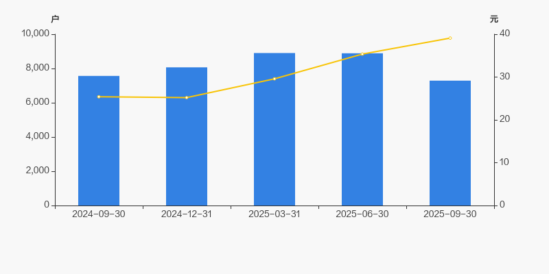 2024年9月30日至今,公司股东户数有所下降,区间跌幅为3.66%。2024年9月30日至2025年9月30日区间股价上涨53.93%。