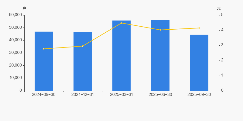 2024年9月30日至今,公司股东户数有所下降,区间跌幅为5.21%。2024年9月30日至2025年9月30日区间股价上涨50.07%。