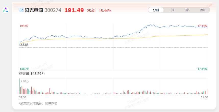 今日收盘阳光电源大涨超15%,可能有以下几个原因: