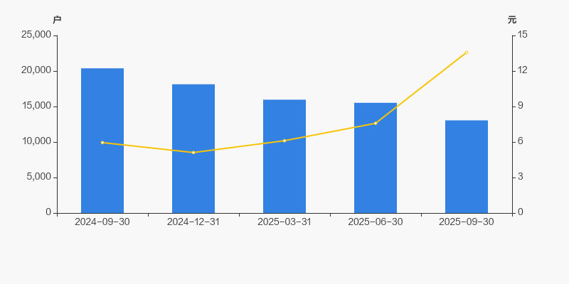 截至2025年9月30日,公司最新总股本为2.53亿股,其中流通股本为2.52亿股。户均持有流通股数量由上期的1.62万股上升至1.93万股,户均流通市值26.22万元。
