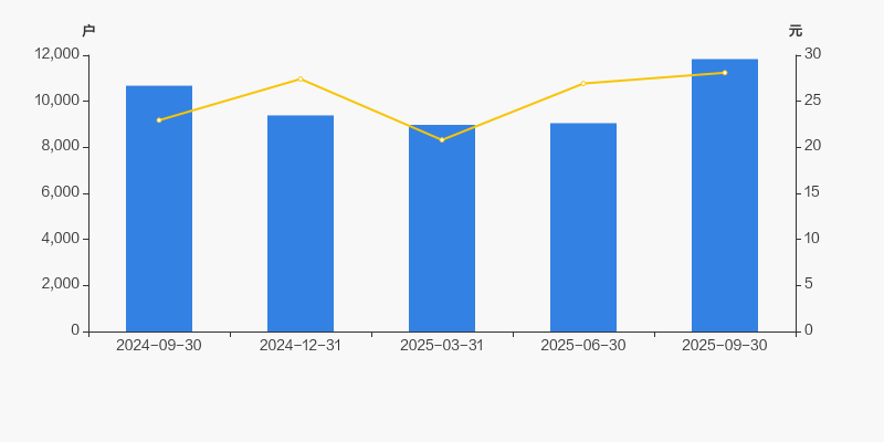 2024年9月30日至今,公司股东户数显著增长,区间涨幅为10.83%。2024年9月30日至2025年9月30日区间股价上涨22.47%。
