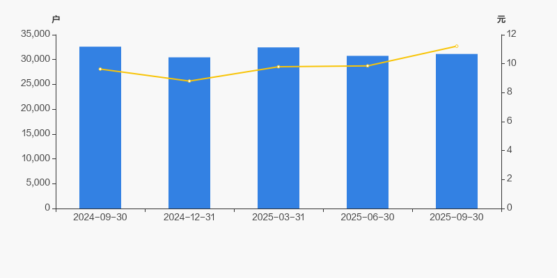 2024年9月30日至今,公司股东户数有所下降,区间跌幅为4.51%。2024年9月30日至2025年9月30日区间股价上涨16.40%。