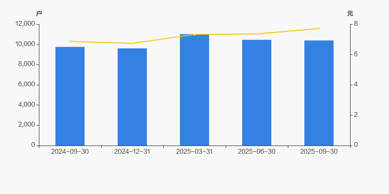 2024年9月30日至今,公司股东户数有所增长,区间涨幅为6.53%。2024年9月30日至2025年9月30日区间股价上涨12.42%。