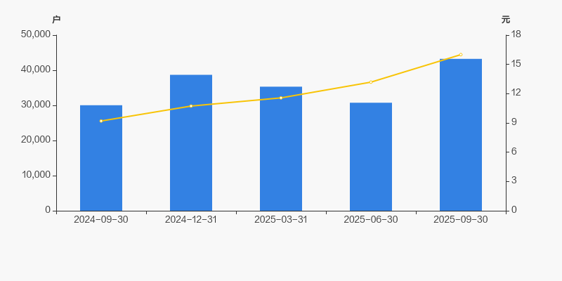 2024年9月30日至今,公司股东户数显著增长,区间涨幅为43.93%。2024年9月30日至2025年9月30日区间股价上涨73.91%。