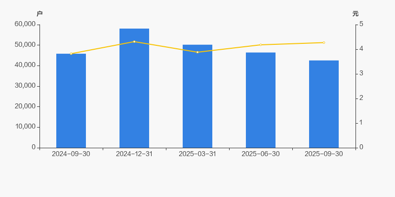 截至2025年9月30日,公司最新总股本为5.56亿股,其中流通股本为4.59亿股。户均持有流通股数量由上期的9883股上升至1.08万股,户均流通市值4.6万元。