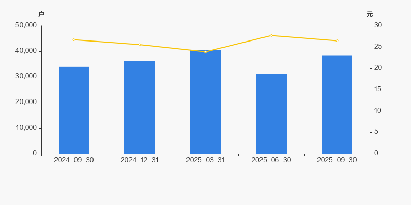 截至2025年9月30日,公司最新总股本为4.31亿股,其中流通股本为4.3亿股。户均持有流通股数量由上期的1.38万股下降至1.12万股,户均流通市值29.72万元。