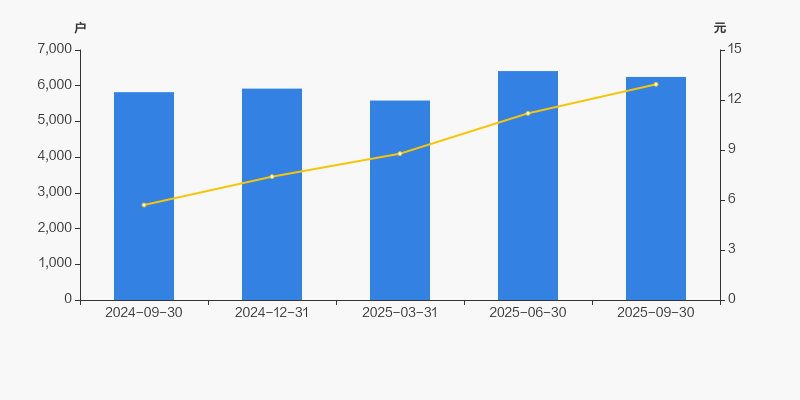 2024年9月30日至今,公司股东户数有所增长,区间涨幅为7.34%。2024年9月30日至2025年9月30日区间股价上涨127.02%。