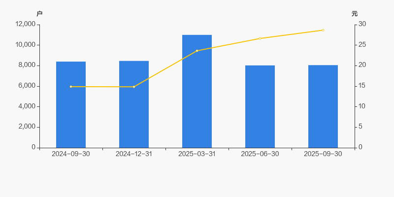 2024年9月30日至今,公司股东户数有所下降,区间跌幅为4.10%。2024年9月30日至2025年9月30日区间股价上涨92.45%。