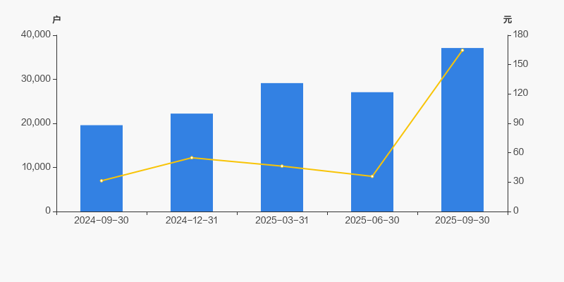 2024年9月30日至今,公司股东户数显著大幅增长,区间涨幅达89.42%。2024年9月30日至2025年9月30日区间股价上涨424.72%。