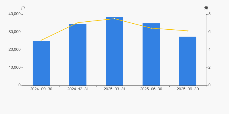 2024年9月30日至今,公司股东户数有所增长,区间涨幅为9.09%。2024年9月30日至2025年9月30日区间股价上涨20.87%。