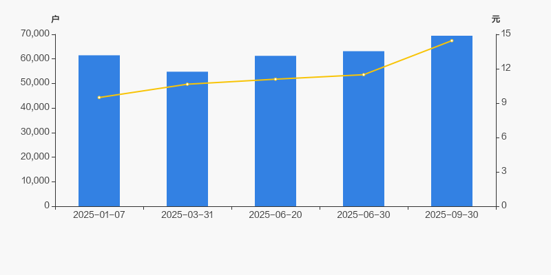 自2025年3月31日以来,公司股东户数连续3期上涨,截至目前增幅为26.73%。2025年3月31日至2025年9月30日区间股价上涨35.68%。