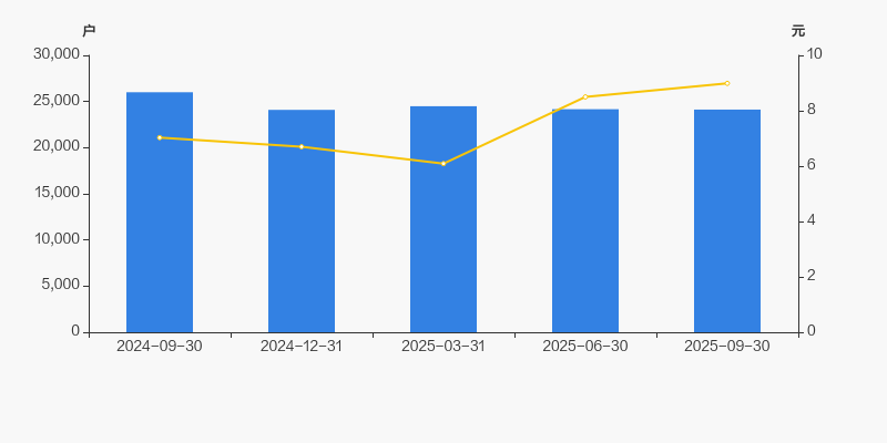 2024年9月30日至今,公司股东户数有所下降,区间跌幅为7.23%。2024年9月30日至2025年9月30日区间股价上涨27.95%。