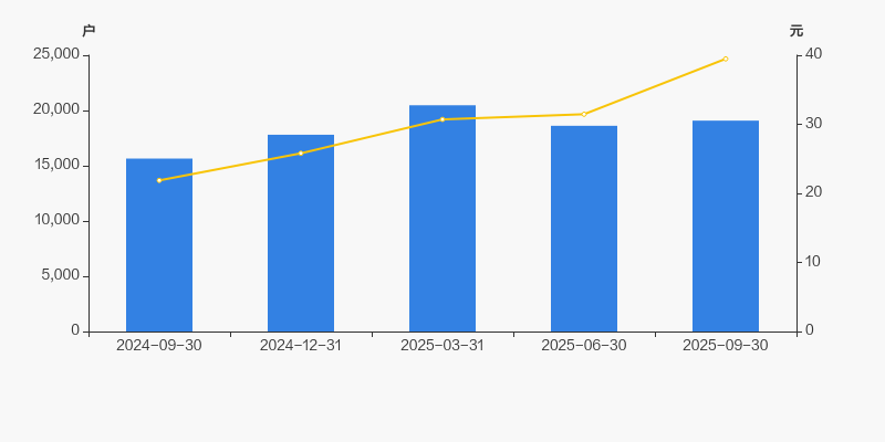 2024年9月30日至今,公司股东户数显著增长,区间涨幅为21.95%。2024年9月30日至2025年9月30日区间股价上涨80.41%。