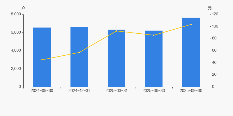 截至2025年9月30日,公司最新总股本为9083.22万股,其中流通股本为8400万股。户均持有流通股数量由上期的1.35万股下降至1.1万股,户均流通市值113.7万元。