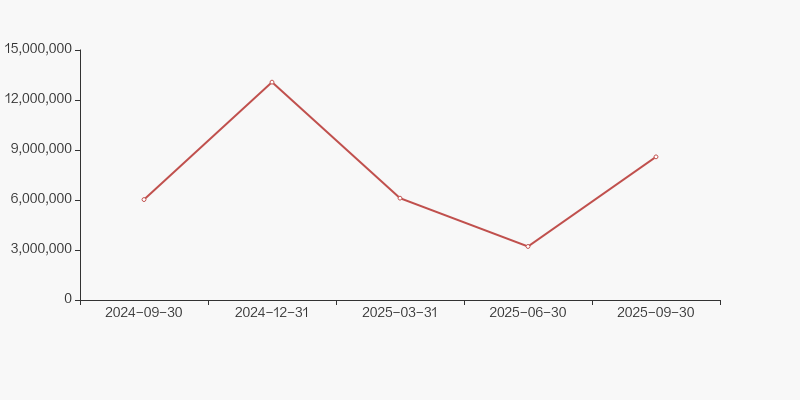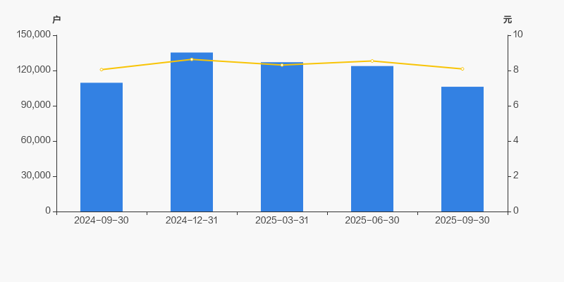 截至2025年9月30日,公司最新总股本为13.04亿股,其中流通股本为13.02亿股。户均持有流通股数量由上期的1.05万股上升至1.23万股,户均流通市值9.92万元。