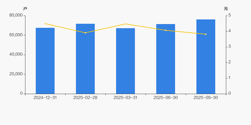 2024年12月31日至今,公司股东户数显著增长,区间涨幅为12.74%。2024年12月31日至2025年9月30日区间股价下降15.12%。