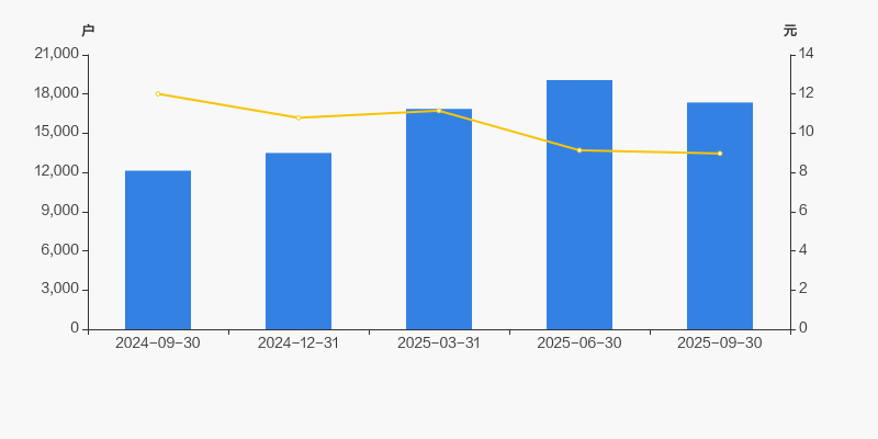 2024年9月30日至今,公司股东户数显著增长,区间涨幅为42.98%。2024年9月30日至2025年9月30日区间股价下降25.31%。