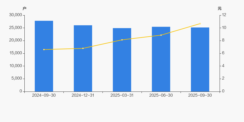 2024年9月30日至今,公司股东户数有所下降,区间跌幅为9.46%。2024年9月30日至2025年9月30日区间股价上涨61.82%。